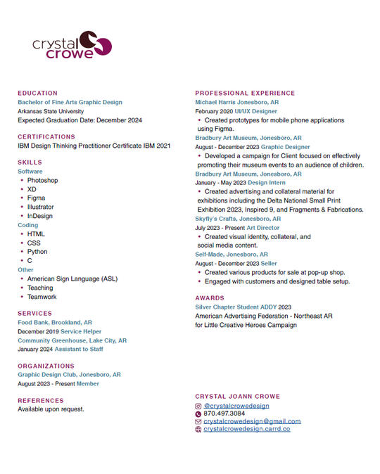 Crystal Crowe Designs is a freelance design company located in Northeast Arkansas.We specialize in marketing, branding, and web design.